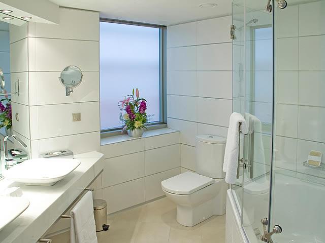 8' 10'' x 6' 2'' (2.7m x 1.9m) Newly fitted matching suite with bath, pedestal wash hand basin, low level WC. Separate cubicle with electric shower. Sash window, part tiled walls, central heating radiator.